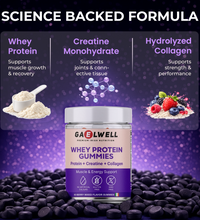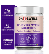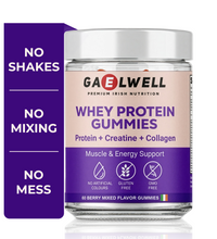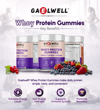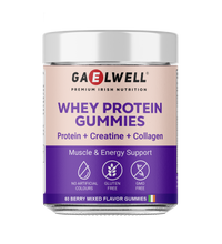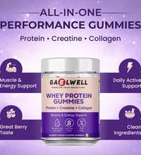 Upgrade your daily nutrition with Gaelwell Whey Protein Gummies, a convenient and great-tasting alternative to traditional protein shakes and powders. These premium protein gummies combine a powerful 3-in-1 formula of whey protein, creatine monohydrate, and hydrolyzed collagen peptides, designed to support muscle strength, workout performance, and recovery while fitting easily into your daily routine.