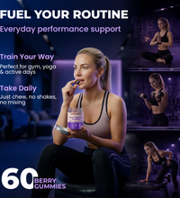 No mess. No mixing. Just on-the-go muscle and energy support in a convenient gummy.